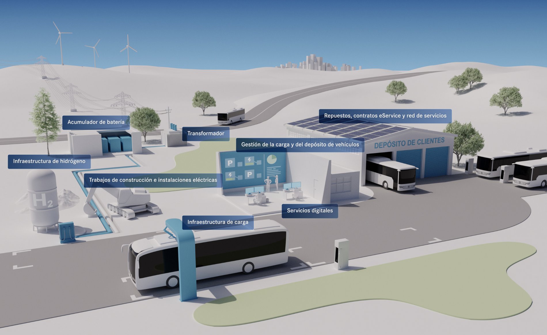 - Concepto integral para la adaptación del depósito a la operación con autobuses eléctricos