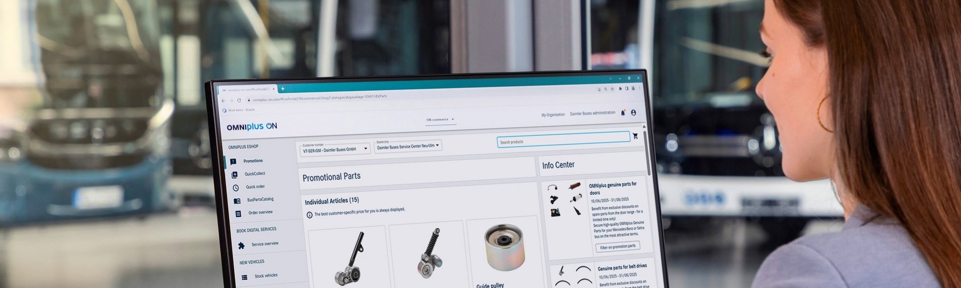 L'OMNIplus eShop è il primo punto di riferimento per la semplice fornitura di ricambi per veicoli Mercedes-Benz e Setra. La funzione di ricerca intelligente consente di ordinare i componenti necessari in modo rapido e semplice e, grazie all'integrazione del VIN nell'eShop, è possibile riordinare rapidamente il componente giusto per ogni autobus. Tempi di fermo prolungati in attesa dei ricambi giusti? Sbagliato!