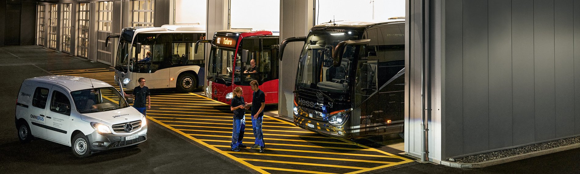 L’OMNIplus BusPort esegue tutti gli interventi di manutenzione e riparazione per autobus dei marchi Mercedes-Benz e Setra a regola d’arte. In quanto punto di assistenza OMNIplus autorizzato, dispone di attrezzi speciali specifici per autobus e corrispondenti apparecchiature diagnostiche per un’assistenza competente ed efficace. Non fate esperimenti, affidatevi allo specialista.