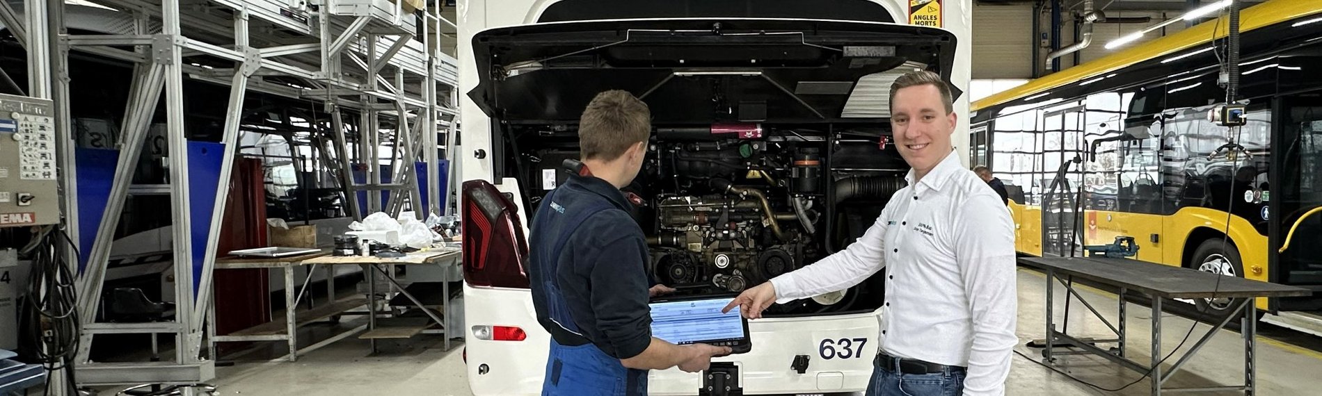 Anderhalf jaar geleden begon Sven zijn loopbaan bij Daimler Buses Nederland in Nijkerk. Als student aan de HAN – Automotive Engineering rondde hij zijn opleiding af met een afstudeeropdracht op onze Customer Services-afdeling, onder begeleiding van Marc Dral, Manager Customer Services. Al tijdens die periode viel Sven op: niet alleen door zijn kennis en analytisch vermogen, maar ook door zijn oprechte liefde voor alles in de buswereld. In het weekend zat hij zelf achter het stuur als touringcarchauffeur en bezorgde hij passagiers een fijne rit. Zijn studie sloot hij af met een hoog cijfer, waarna hij direct bij ons aan de slag ging.